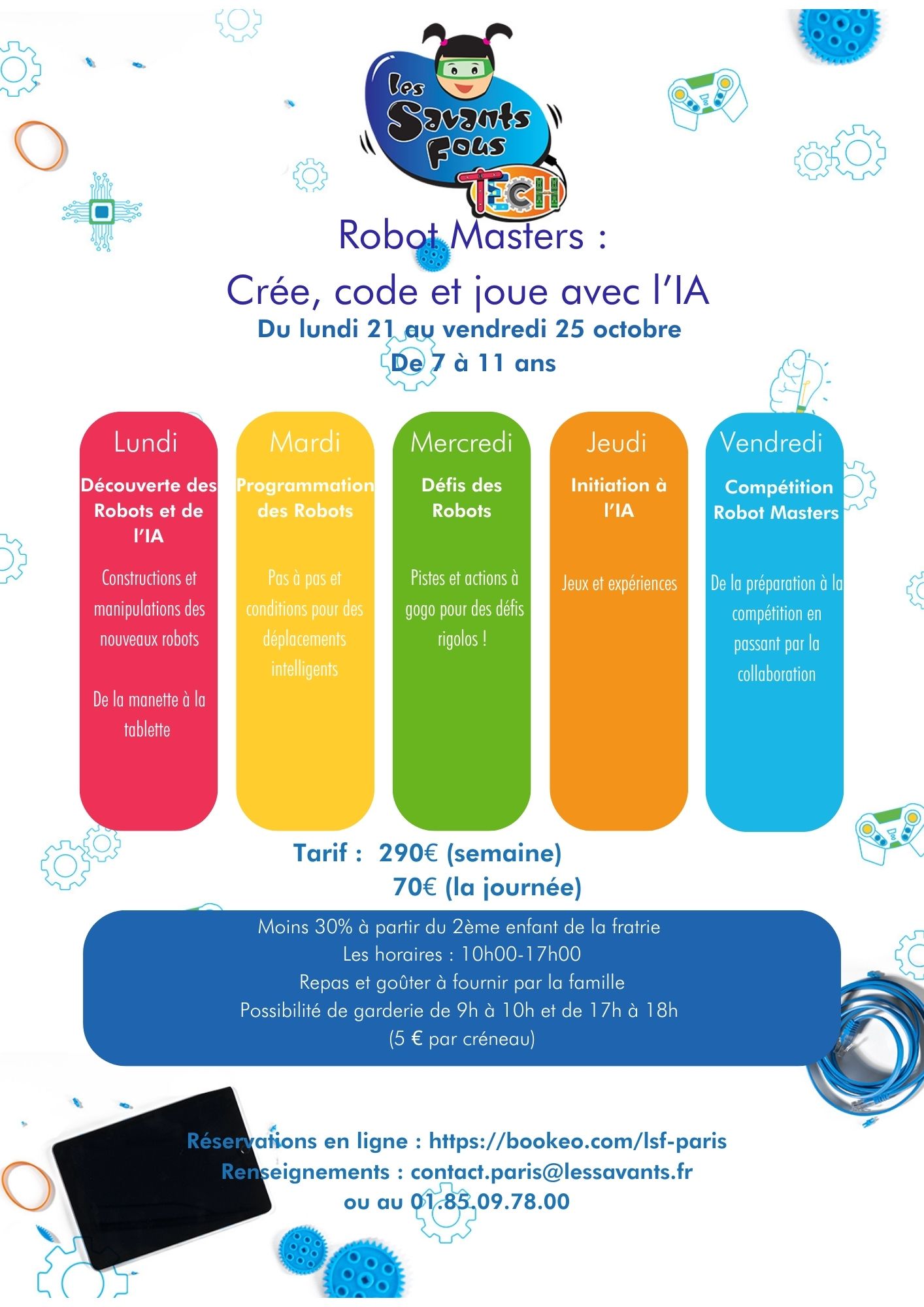 Du lundi 21 au vendredi 25 octobre : Robot Masters : Crée, Code et Joue avec l’IA !