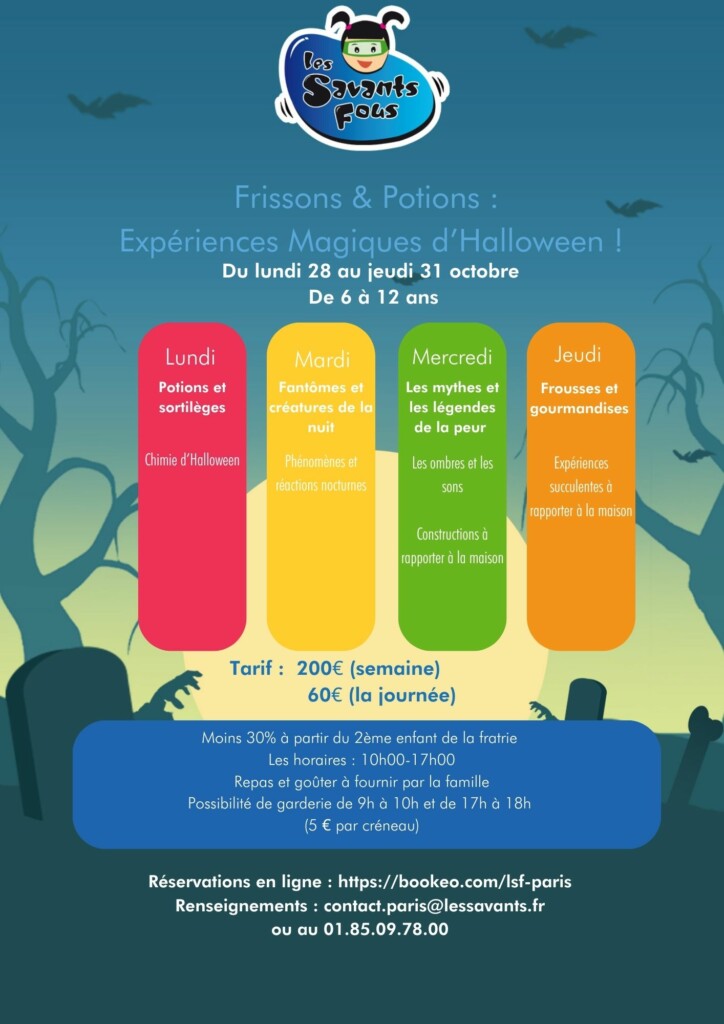 Du lundi 28 au jeudi 31 octobre : “Frissons & Potions : Expériences Magiques d’Halloween !”