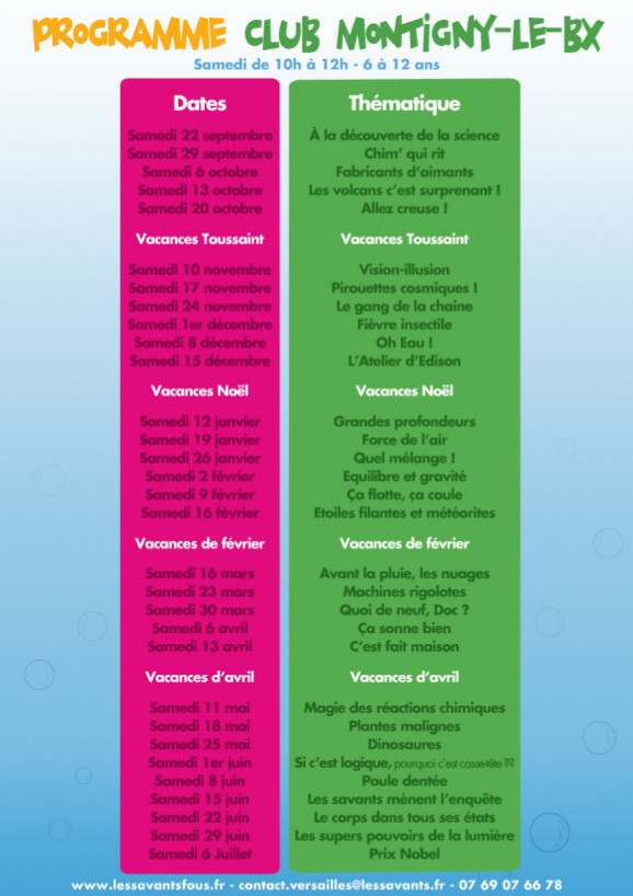 Inscriptions auprès de Sandrine Pollet – 07 69 07 66 78contact.versailles@lessavants.fr