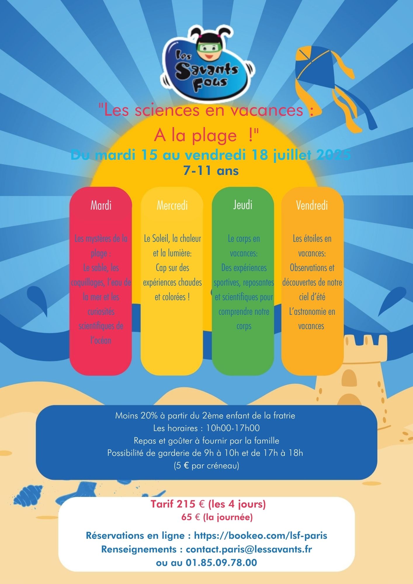 Encadrés par des animateurs professionnels et bienveillants, les enfants (de 7 à 11 ans – et même les ados pour un stage spécial !) plongent chaque jour dans un univers scientifique différent.