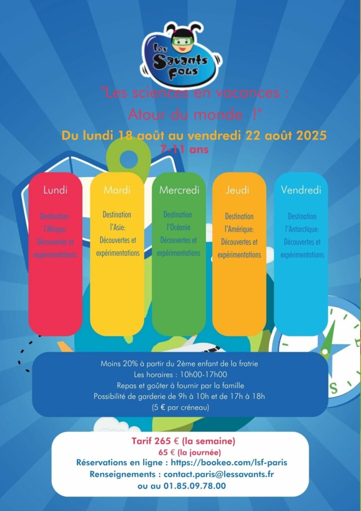 Du lundi 18 au vendredi 22 août : Vacances autour du monde