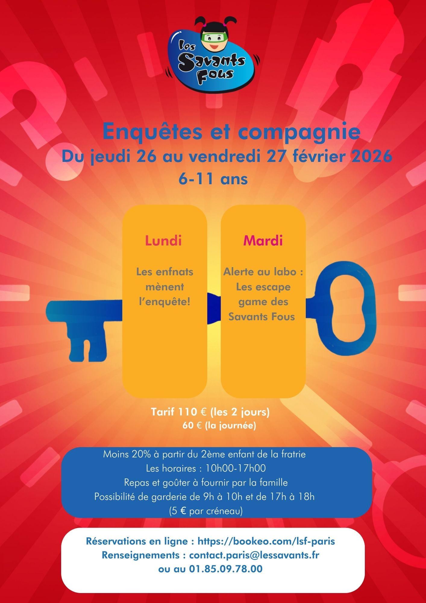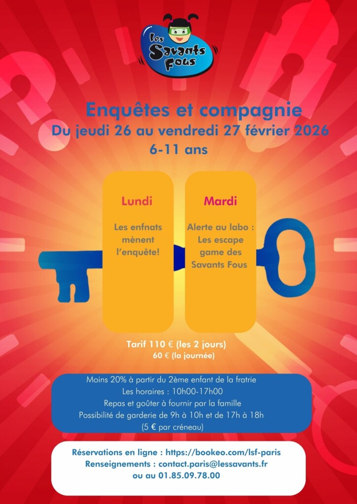 Pendant 2 jours, les enfants plongent dans l’univers passionnant des enquêtes scientifiques et des escape games, où observation, logique et coopération sont les clés pour réussir.