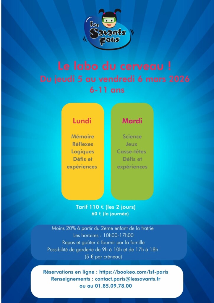 Du jeudi 5 au vendredi 6 mars 2026 : Le labo du cerveau
