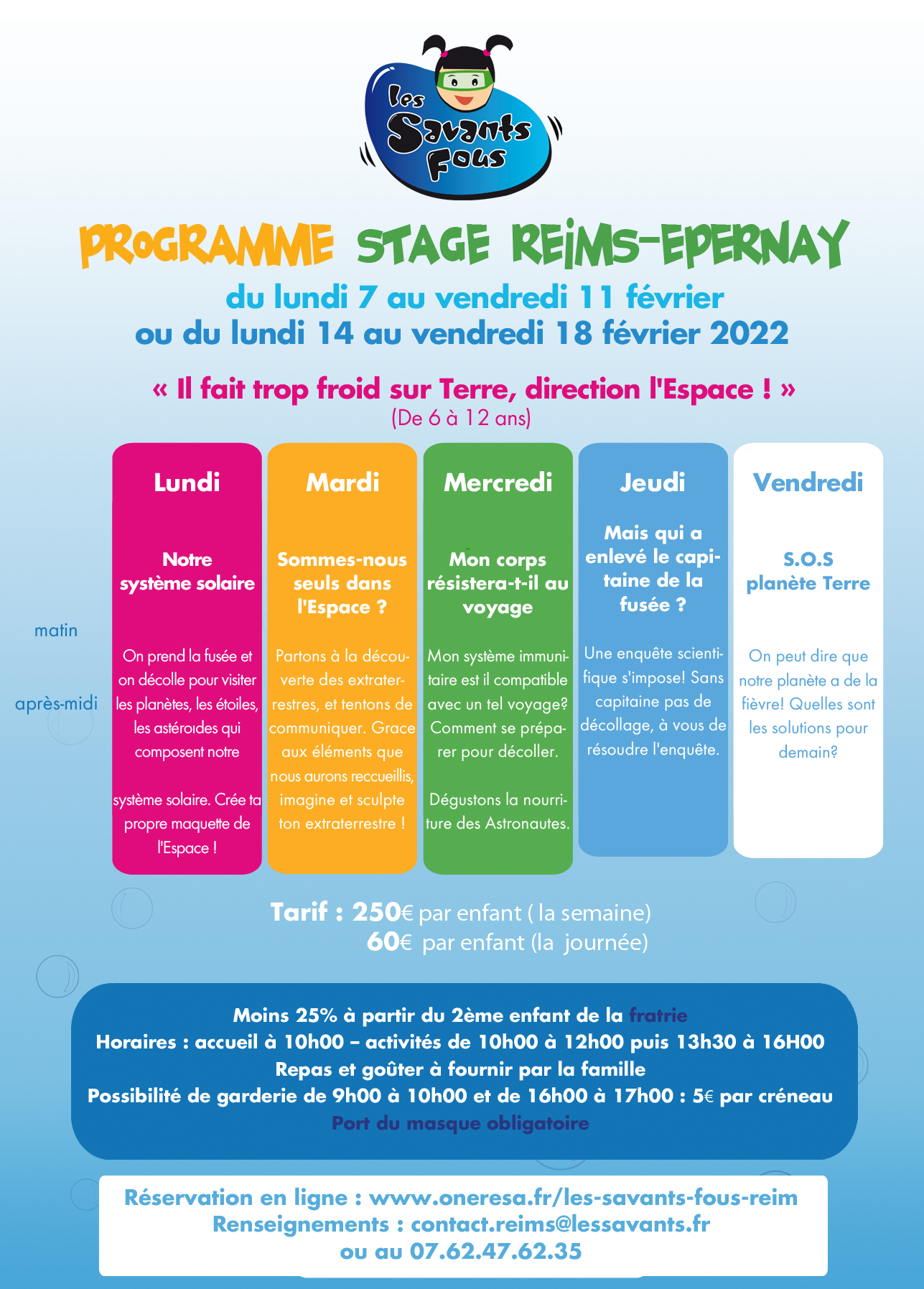 On peut admettre que les vacances d’hiver ne sont pas les plus simples à organiser pour les enfants et pourtant chez les Savants fous à Reims nous avons pensé à un stage qui les fera voyager loin, très loin. Nous emmènerons leurs esprits visiter la galaxie.