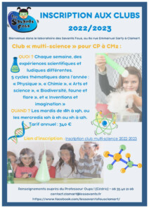 Du CP au CM2, tous les enfants ont leur place ! Découvrez ici notre offre de clubs multi-science des mardis et mercredis :