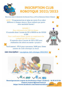 Des clubs de programmation de robots, de niveau 1 et 2, sont ouverts aux enfants du CE1 à la 3ème les samedis matin. Découvrez notre offre ici :
