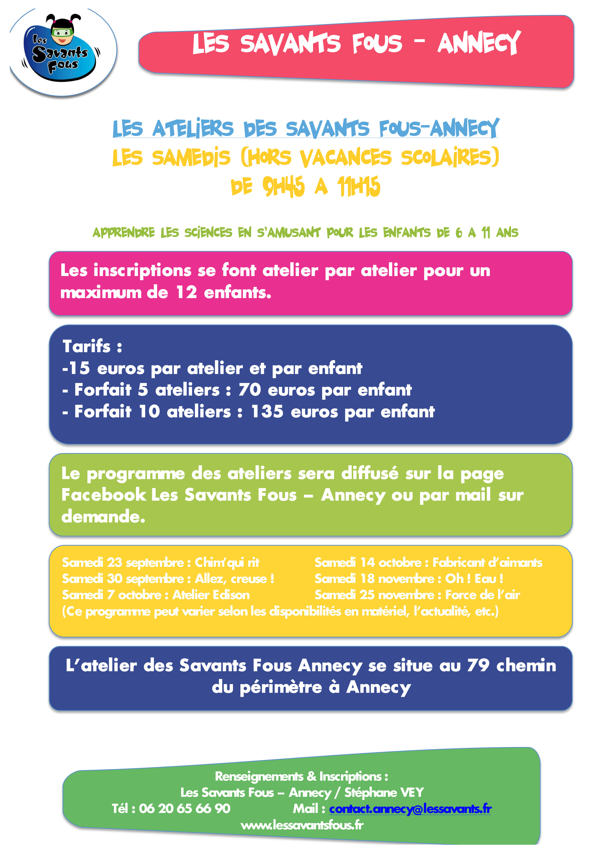 Et les actualités des Savants Fous Annecy, annonçant notamment le programme des ateliers seront sur le blog du site www.lessavantsfous.fr et sur la page Facebook Les Savants Fous – Annecy https://www.facebook.com/lessavantsannecy/