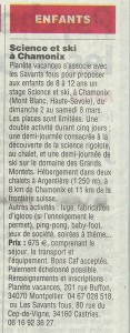 Ski : dans un décor de haute montagne remarquable, situé entre 1 250 m et 2 673 m d’altitude. Le téléphérique des Grands Montets est à 70 m seulement des chalets. Retour aux chalets skis au pied. Les enfants sont répartis par groupes de niveau en présence d’un adulte.