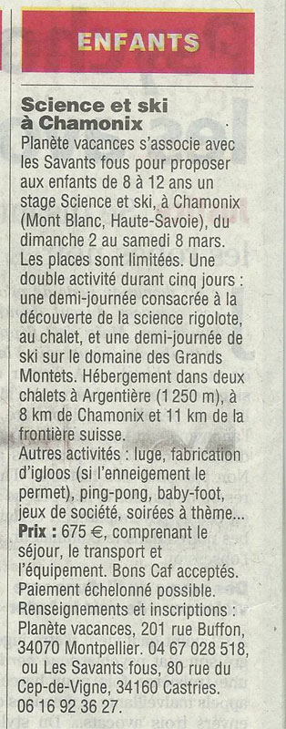 « Les Savants Fous » organisent son séjour Science et Ski à Chamonix – Mont Blanc