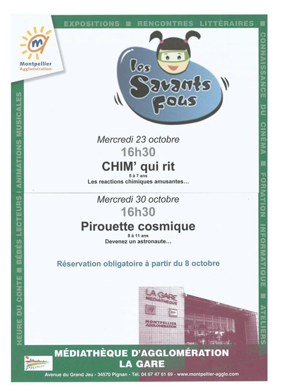 Les Savants Fous terminent le tour des médiathèques de l’agglo de Montpellier Grégoire Triquet2013-11-05T13:24:15+01:005 novembre 2013|Catégories : Blog sur l'actualité des franchisés, Montpellier| Partagez cet article ! FacebookTwitterRedditLinkedInTumblrPinterestEmail