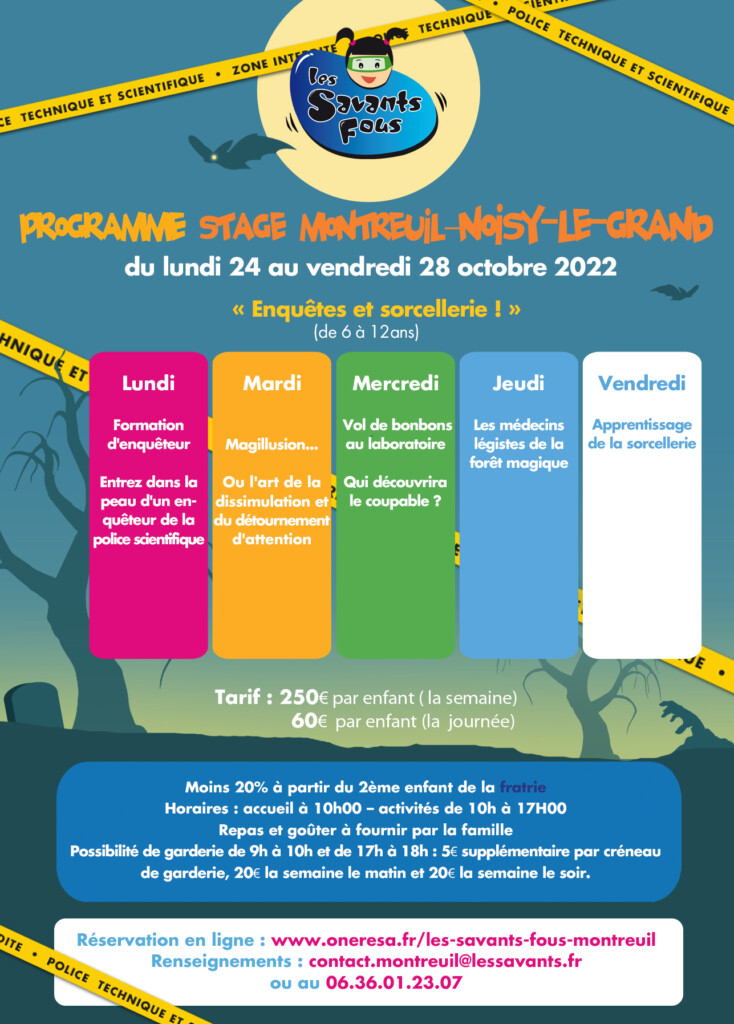 Ils se glisseront dans la peau de vrais enquêteurs et découvriront tous les secrets et astuces de la police scientifique pour résoudre des crimes … Mais attention, en cette période de l’année, monstres et sorciers ne sont jamais bien loin et viendront mettre leur grain de sel dans nos enquêtes…