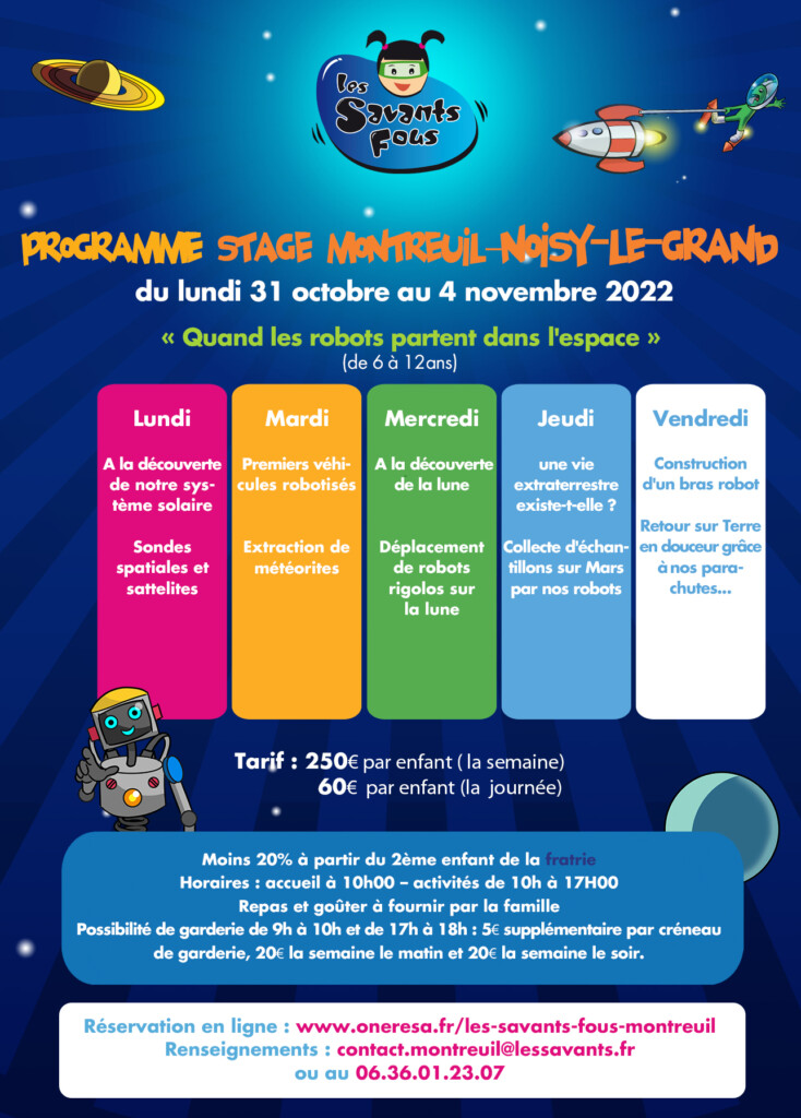 N’hésitez pas à nous joindre pour tout renseignement par téléphone au 06.36.01.23.07 ou par mail à contact.montreuil@lessavants.fr