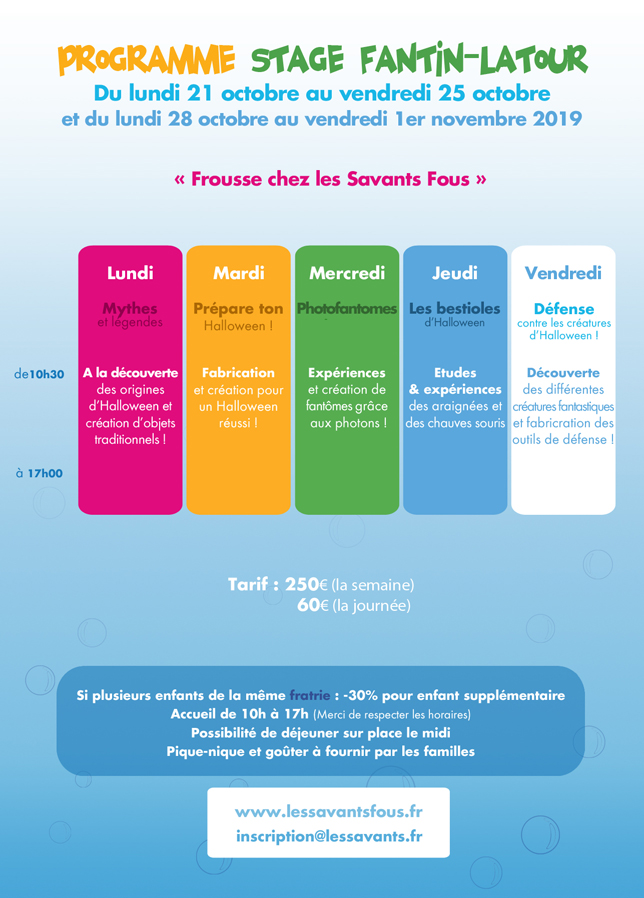 Pour cette nouvelle édition des stages des vacances d’automne, les Savants Fous préparent un programme « effrayant » pour vos enfants.
