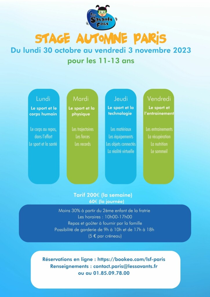 Pour tous renseignements, n’hésitez pas à contacter notre équipe à l’adresse contact.paris@lessavants.fr ou par téléphone au 0185097800