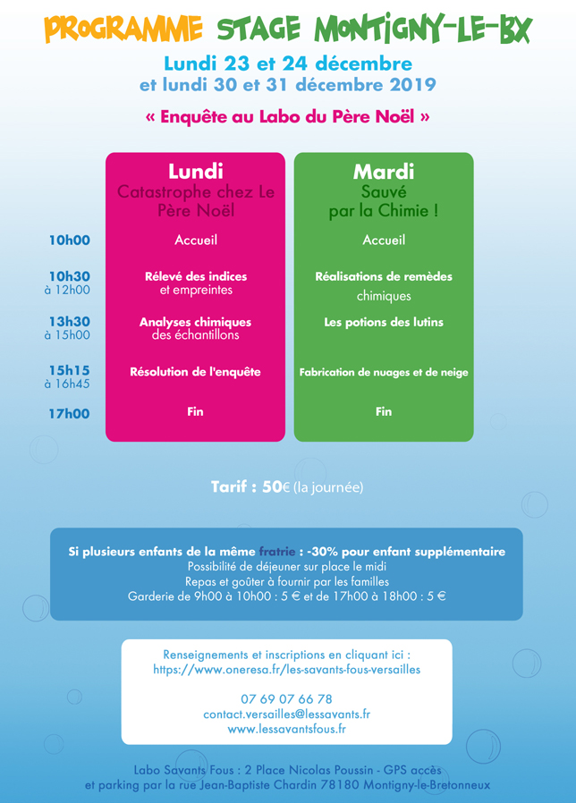 Pour tout renseignement, vous pouvez contacter nos équipes au 07 69 07 66 78 ou par mail à l‘adresse contact.versailles@lessavants.fr
