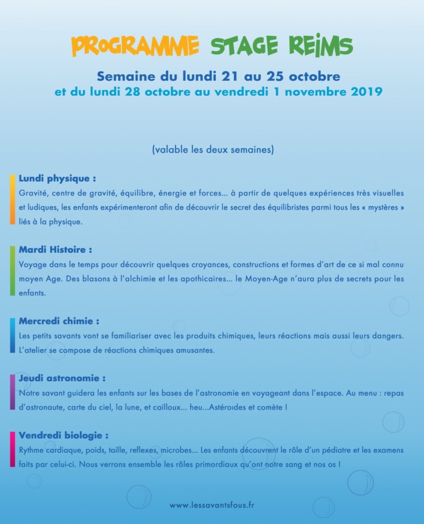 Durant ces vacances de la Toussaint, nous allons aborder un grand nombre de thèmes scientifiques !