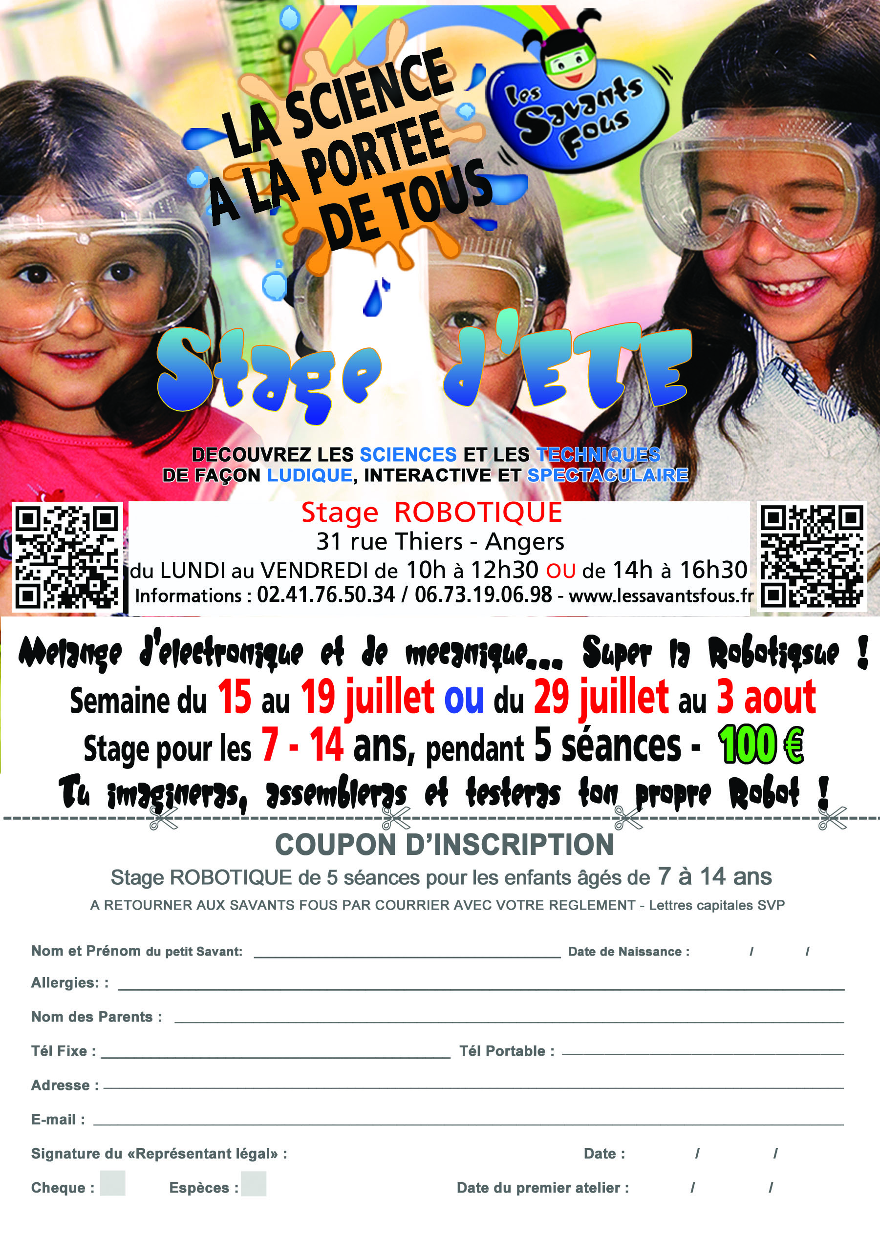• Objet : Pendant la semaine de stage, les jeunes savants allieront imagination, électronique et mécanique pour comprendre et réaliser des ensembles robotisés. Nul doute que ce stage ravira les jeunes passionnés comme les futurs génies en herbe!