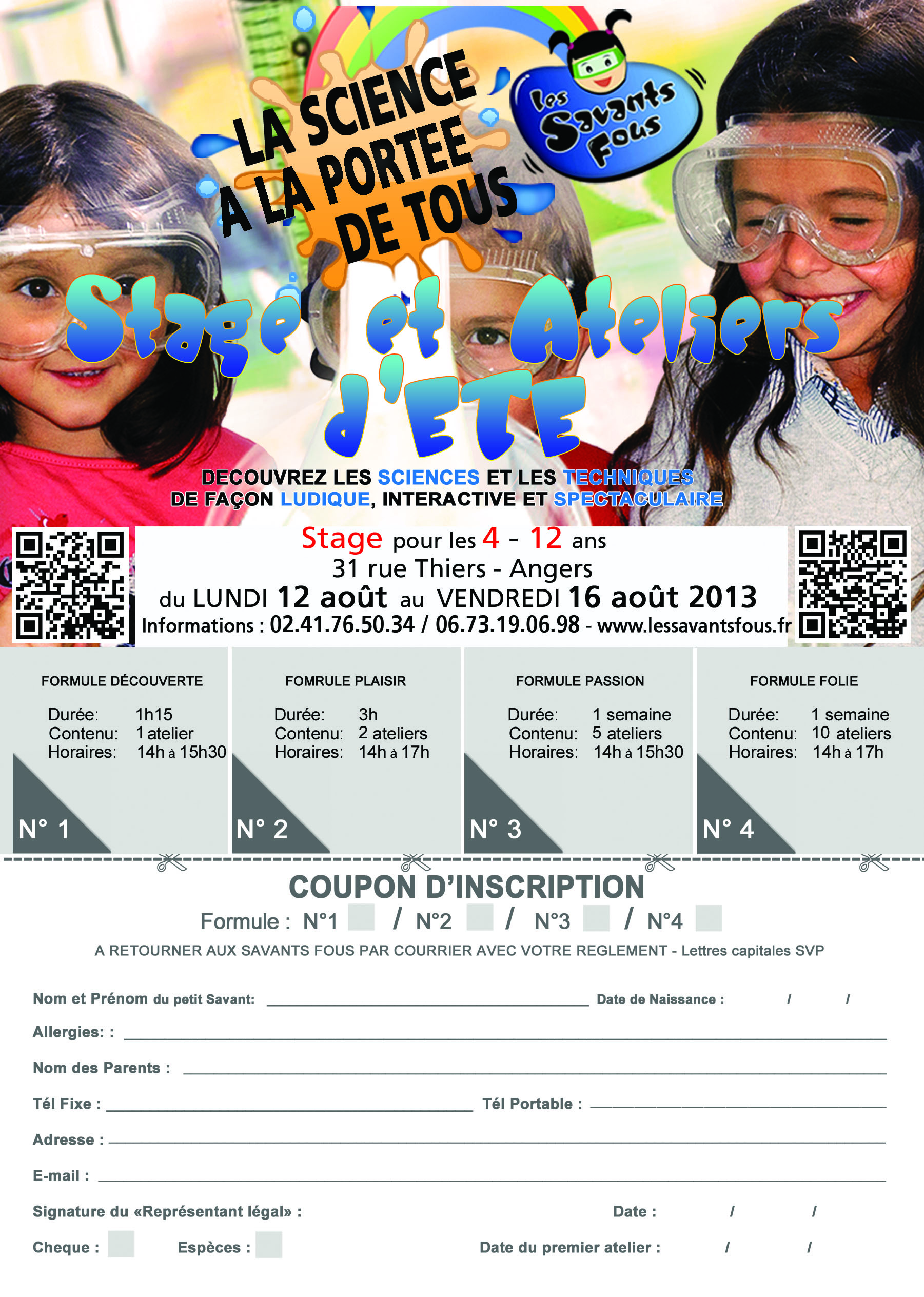 Stage et ateliers scientifiques pour les 4 – 12 ans