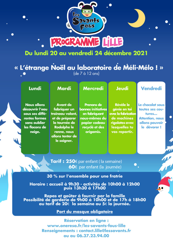 Si vos petits savants ont l’envie folle de connaître la neige dans tous ses états, de voyager avec le renne Rodolphe à bord de son traîneau à propulsion, de construire des machines rigolotes et de les emballer avec son propre papier recyclé, voire de s’imprégner des musiques et des recettes de noël…