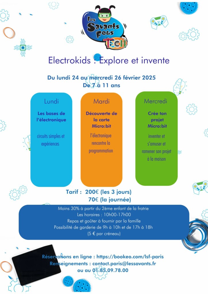 Du lundi 24 au mercredi 26 février 2025 : Electrokids : invente et explore !