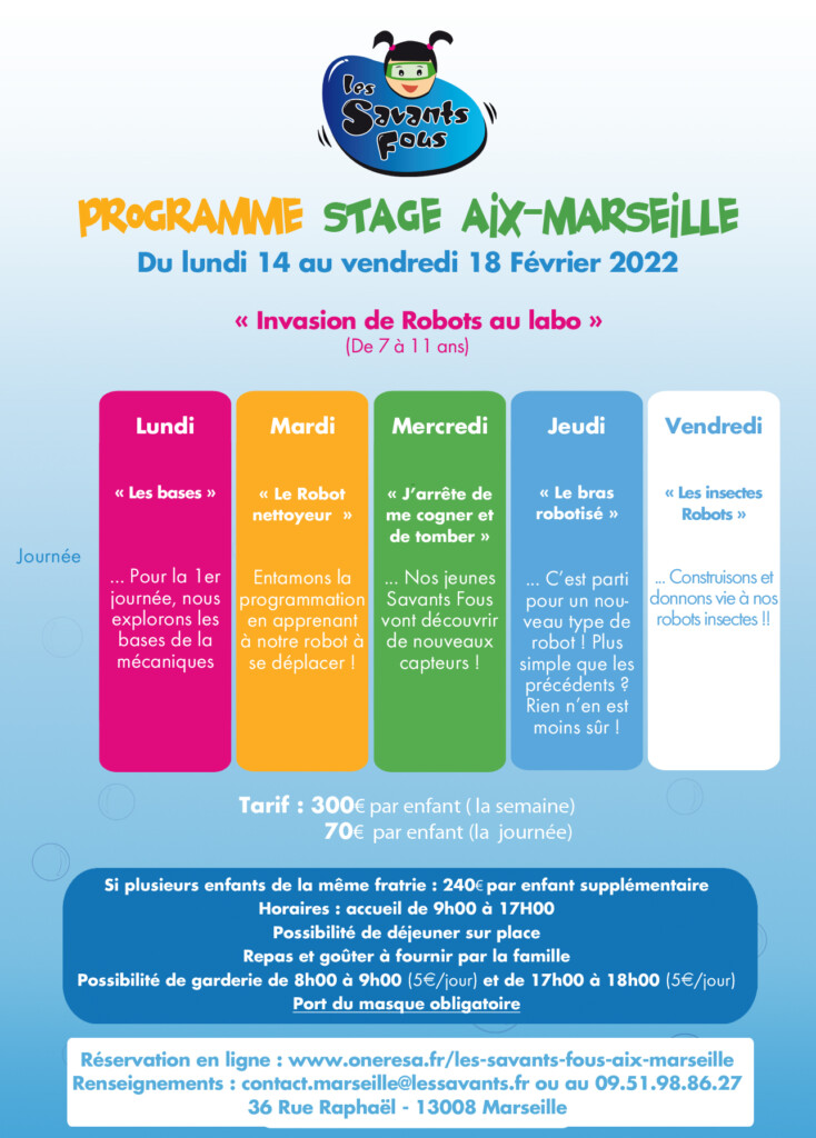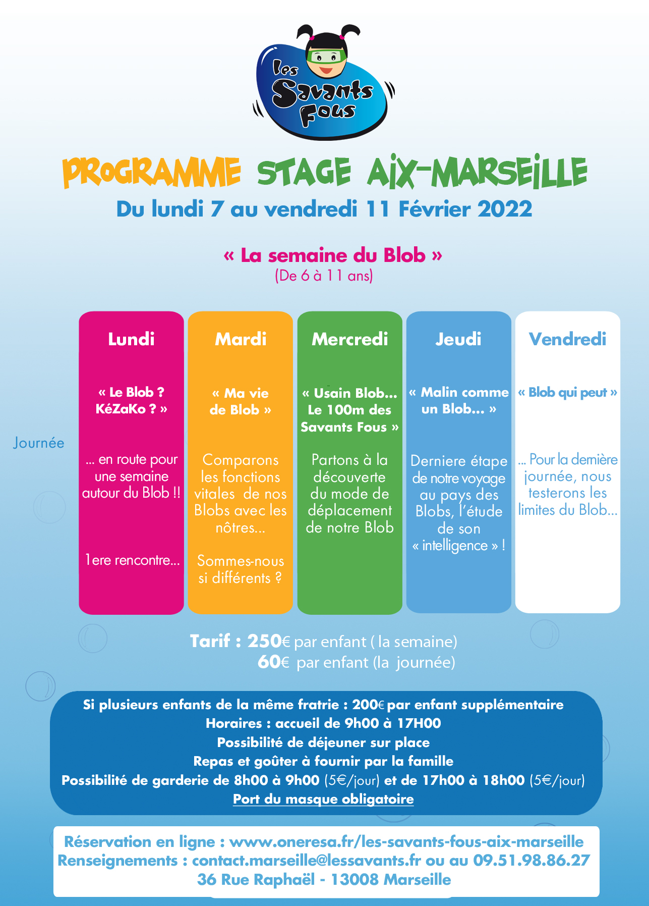 Pour tout renseignement, vous pouvez contacter notre équipe de Savants Fous au 07 49 22 26 03 ou par mail à l’adresse contact.marseille@lessavants.fr.