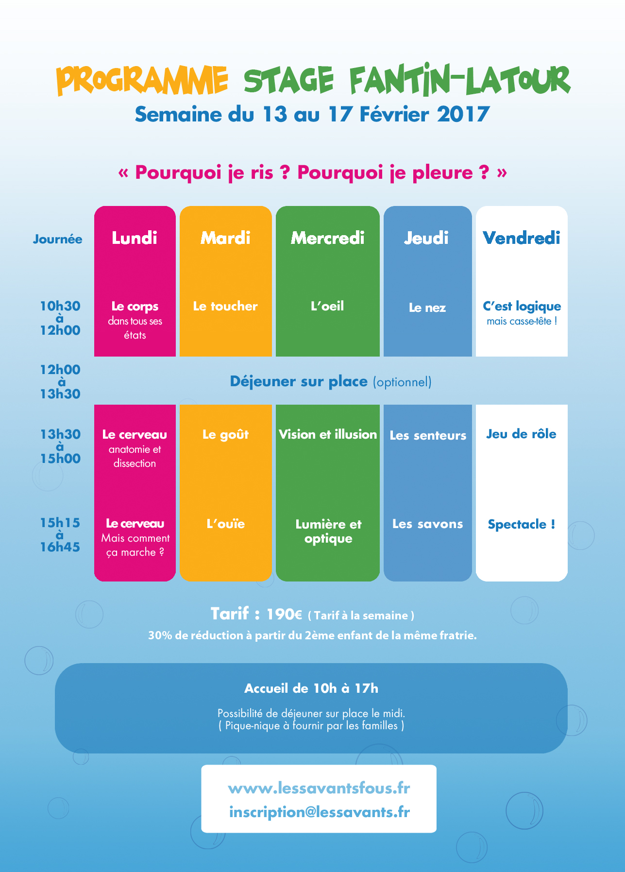 Stage du lundi 6 au vendredi 10 février : 190 euros (tarif unique semaine)