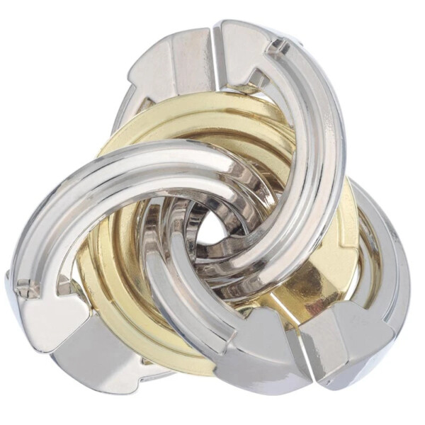 Ce jeu de réflexion en métal est inspiré du bijou "Les anneaux imbriqués". Mais ici, il faut arriver à l’assembler avec très peu d’espace disponible. Prépare tes mouvements les plus habiles pour espérer en venir à bout !