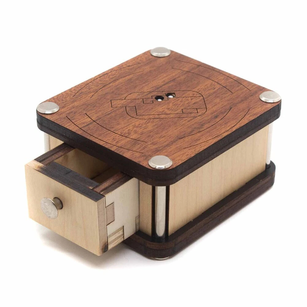 Le casse-tête Centrale Box est une boîte en bois et en acier dont il faut ouvrir le tiroir. Un mystérieux dessin d’instruction est gravé au dessus, il faudra savoir l’interpréter pour débloquer le mécanisme. Une fois ouvert, on peut cacher un mot ou un petit objet dans le tiroir.
