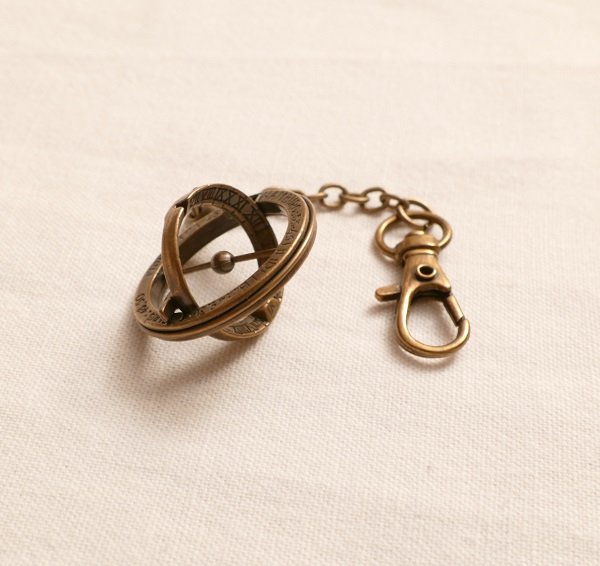 Tourne ce cadran de façon que le style (parallèle à l’axe nord-sud de la Terre) pointe vers l’étoile polaire ou le nord géographique. L’ombre du style sur l’anneau intérieur (parallèle l’équateur terrestre) indique alors le temps vrai local.