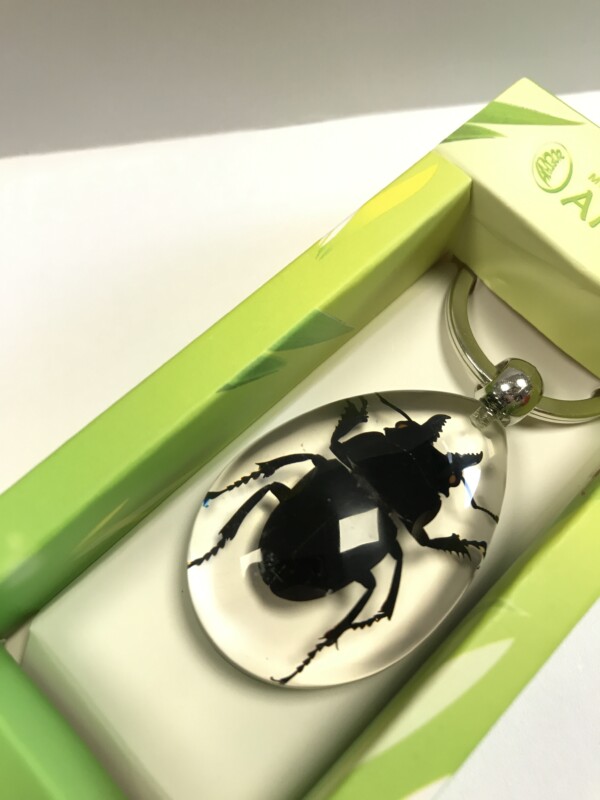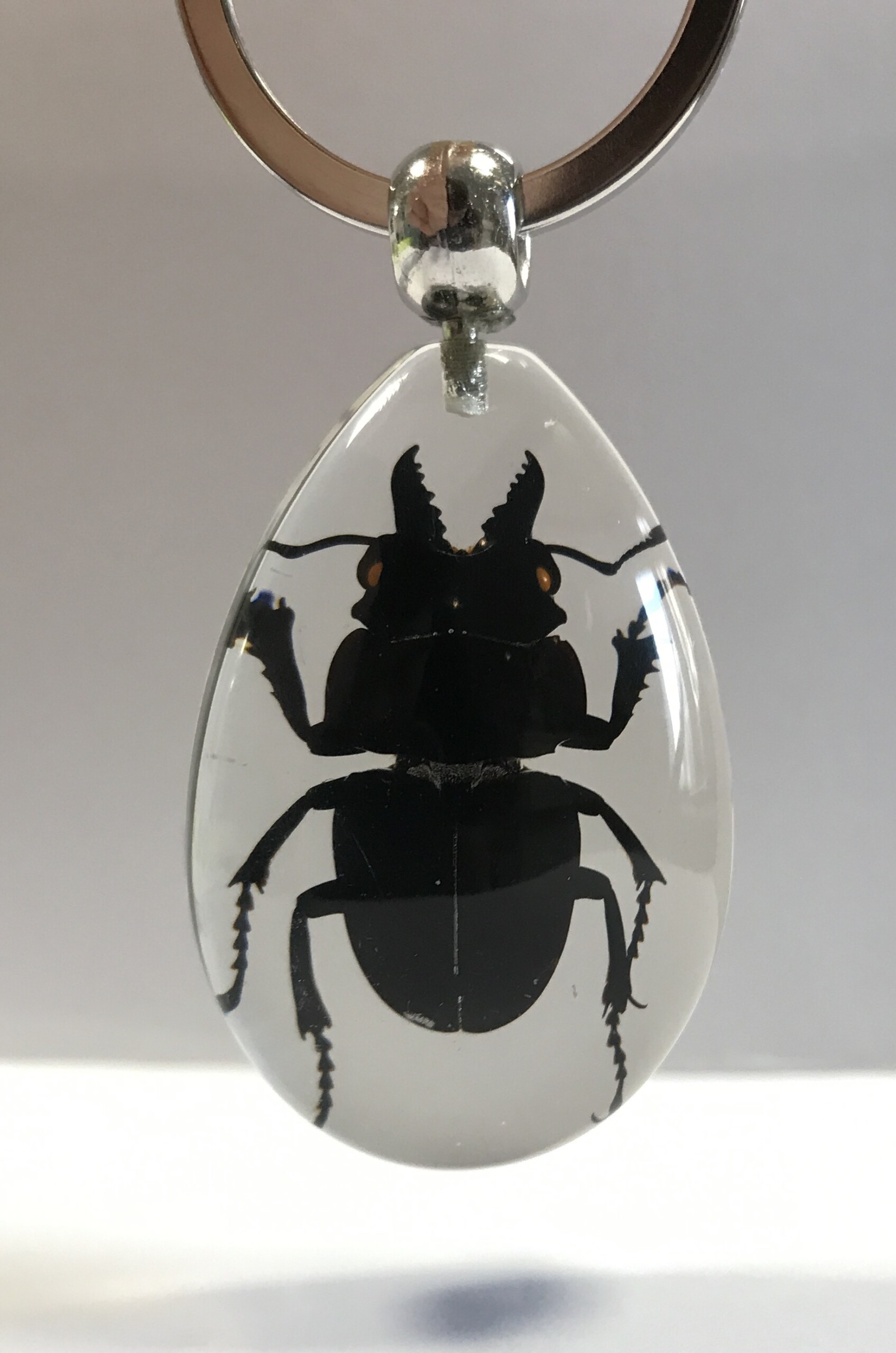 Découvrez l’entomologie avec ce curieux porte-clés d’insecte naturalisé sous verre. Le Lucane est un insecte qu'on reconnaît à ses mandibules longues à piques. C'est le plus grand coléoptère d'Europe. Ce spécimen est une femelle sombre car ses mandibules sont courtes et puissantes. On les trouve en général dans les forêts, et plus précisément dans les troncs d'arbres morts dont-ils se nourrissent.