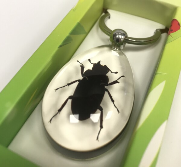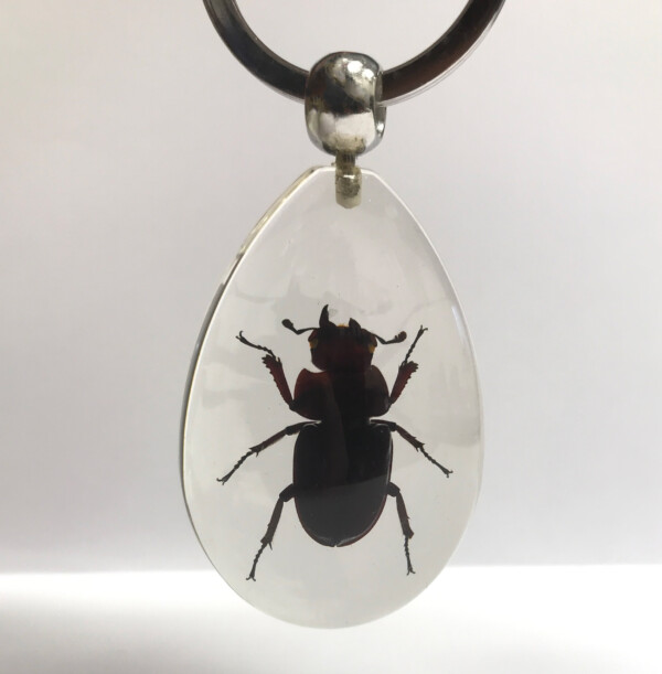 Découvrez l’entomologie avec ce curieux porte-clés d’insecte naturalisé sous verre. Le Lucane est un insecte que l'on reconnaît à ses mandibules longues à piques. C'est le plus grand coléoptère d'Europe. On les trouve en général dans les forêts, et plus précisément dans les troncs d'arbres morts dont-ils se nourrissent. Le mâle a des mandibules longues, tandis que celles de la femelle sont plus courtes et plus puissantes.