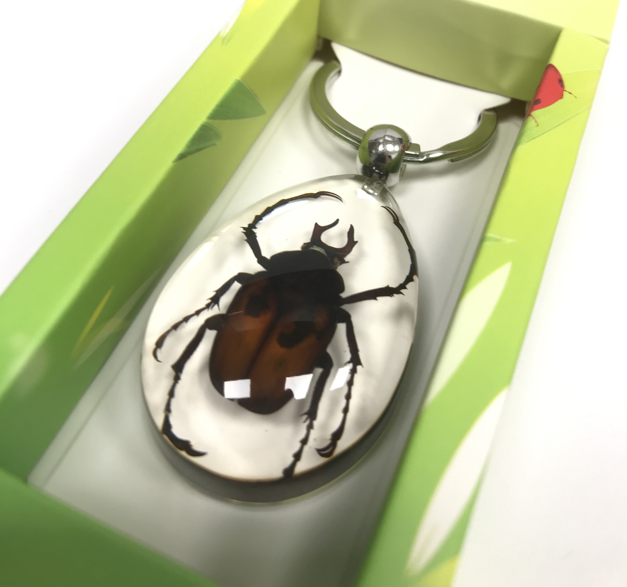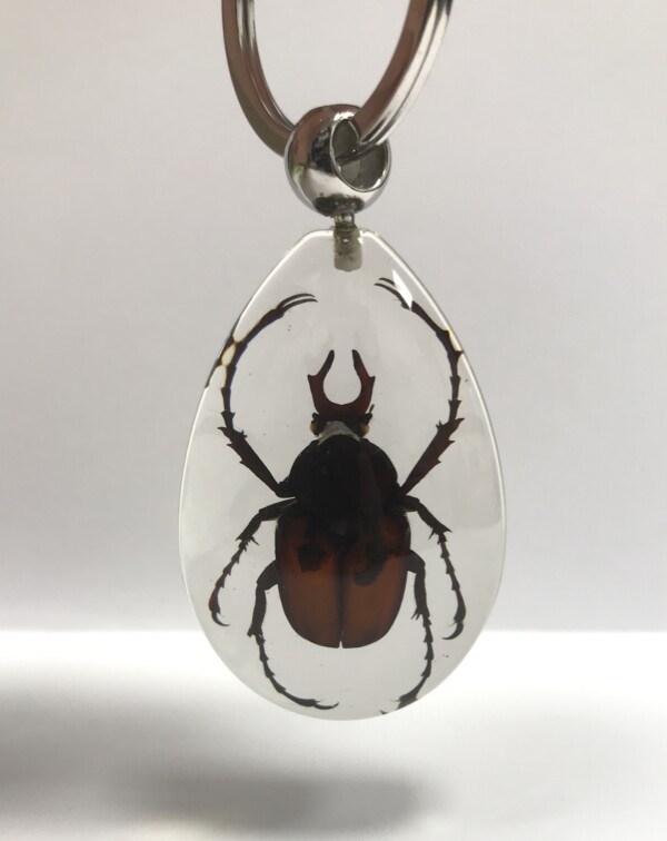 Découvrez l’entomologie avec ce curieux porte-clés d’insecte naturalisé sous verre. Le Scarabée Capricorne (Dicranocephalus Wallichi) est un insecte originaire des forêts d'Asie qui se nourrit de bois mort. On l'appelle "Capricorne" en raison de ses deux cornes. Ses pattes crochues lui permettent de monter à la plupart des arbres.
