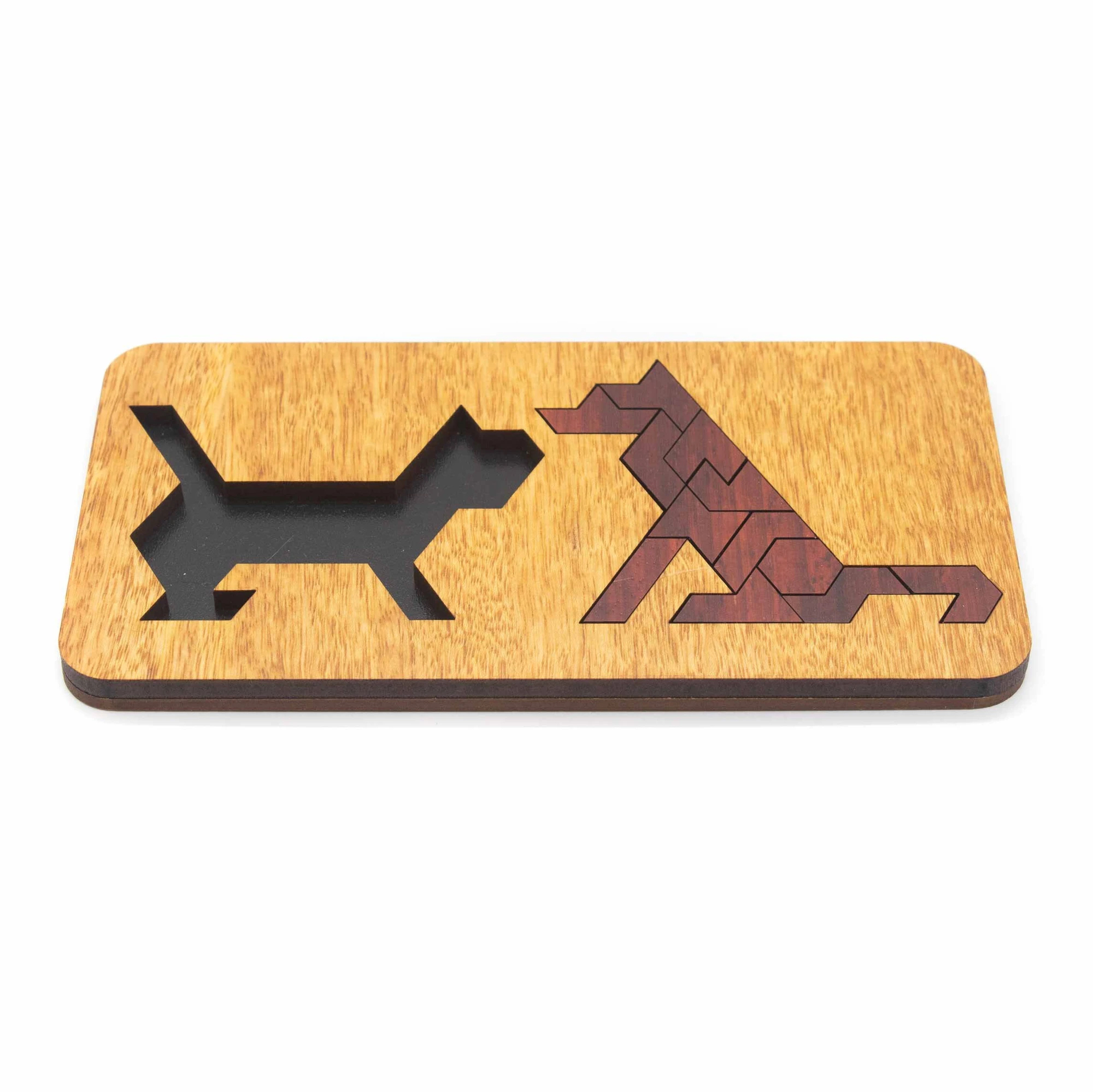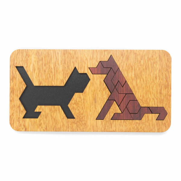Ce tangram en bois va vous déstabiliser : il inverse les formes du chien et chat. Il faudra compléter chaque forme avec les 12 pièces en bois fournies sans se tromper ! Ce labyrinthe initie à la logique et la géométrie.