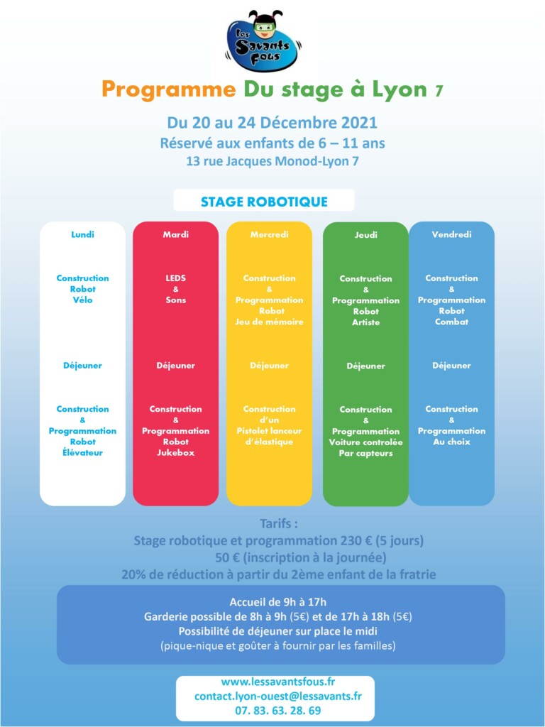 Le stage des vacances de Noël à Lyon 7 se déroulera du 20 au 24 décembre 2021 et aura pour thème la robotique.