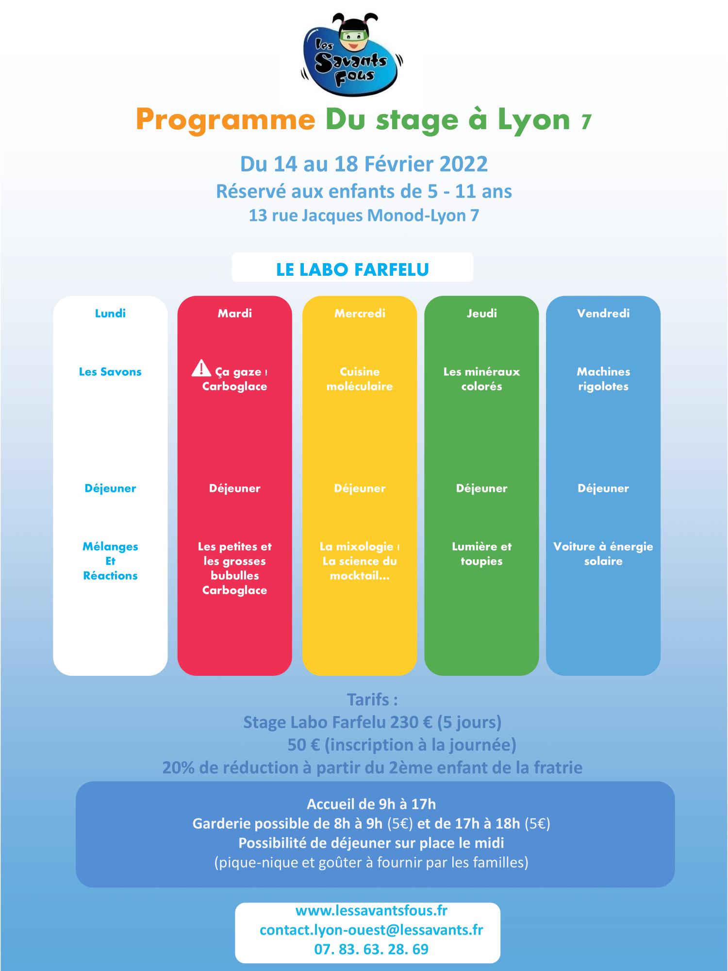 Stage du 14 au 18 février 2022« le laboratoire farfelu de Lyon… »