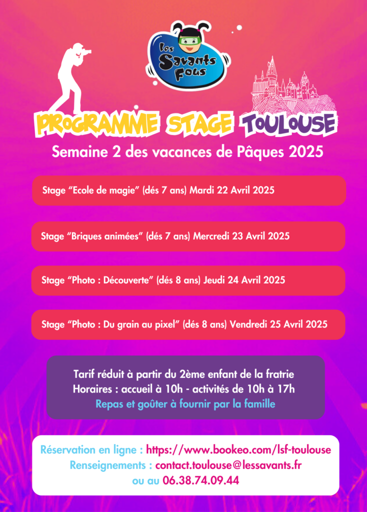 Si vous avez des questions ou besoin de plus d’informations, n’hésitez pas à nous contacter au 06.38.74.09.44 ou par e-mail à contact.toulouse@lessavants.fr.