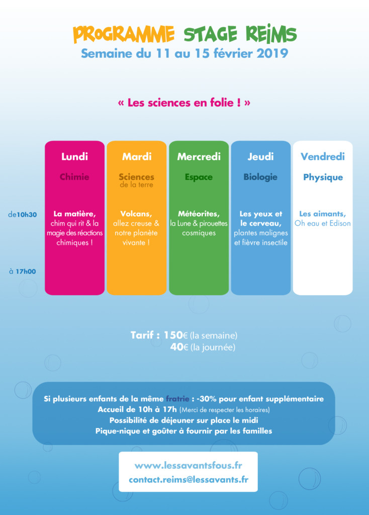Pendant 5 jours, ils deviennent des petits savants en herbe et découvrent différentes disciplines de la science.