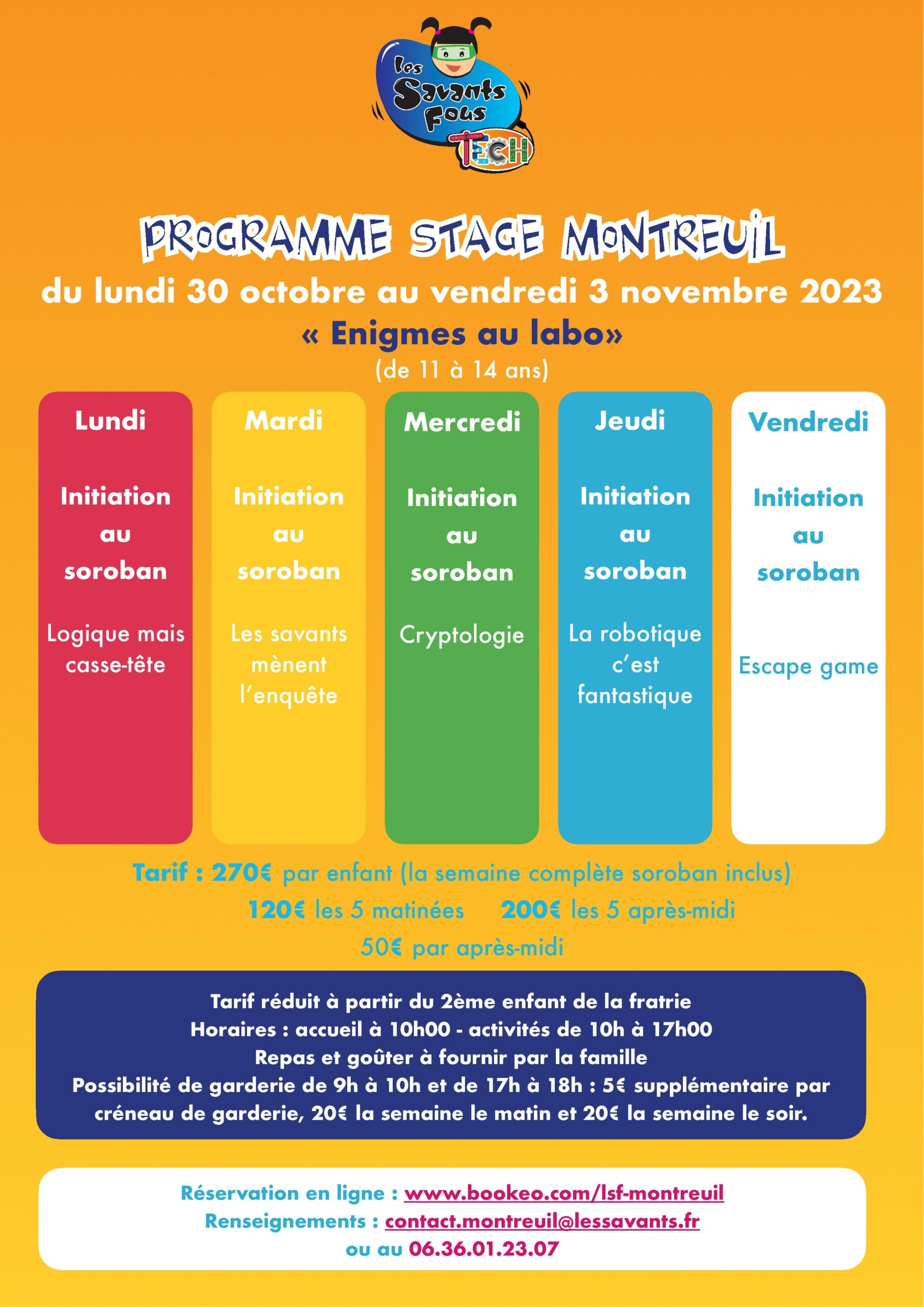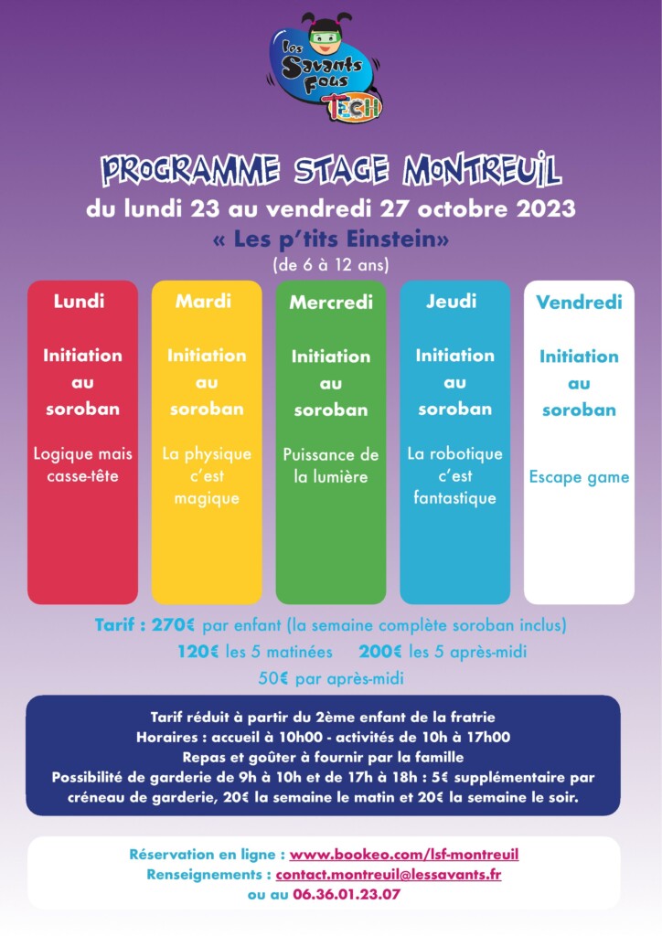 Pour plus d’informations, contactez nous au 06.36.01.23.07 ou par mail à contact.montreuil@lessavants.fr