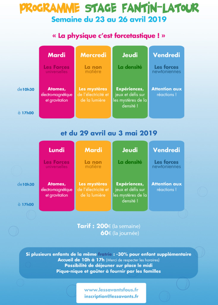 Pour ces vacances de printemps, la science physique est mise à l’honneur afin que nos apprentis savants comprennent les lois incroyables de cette discipline !