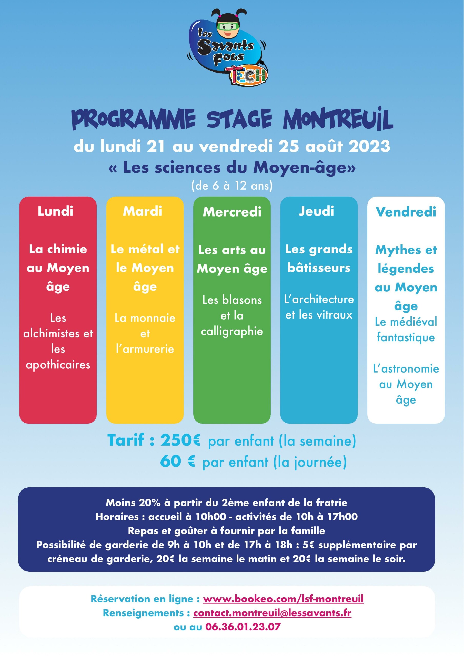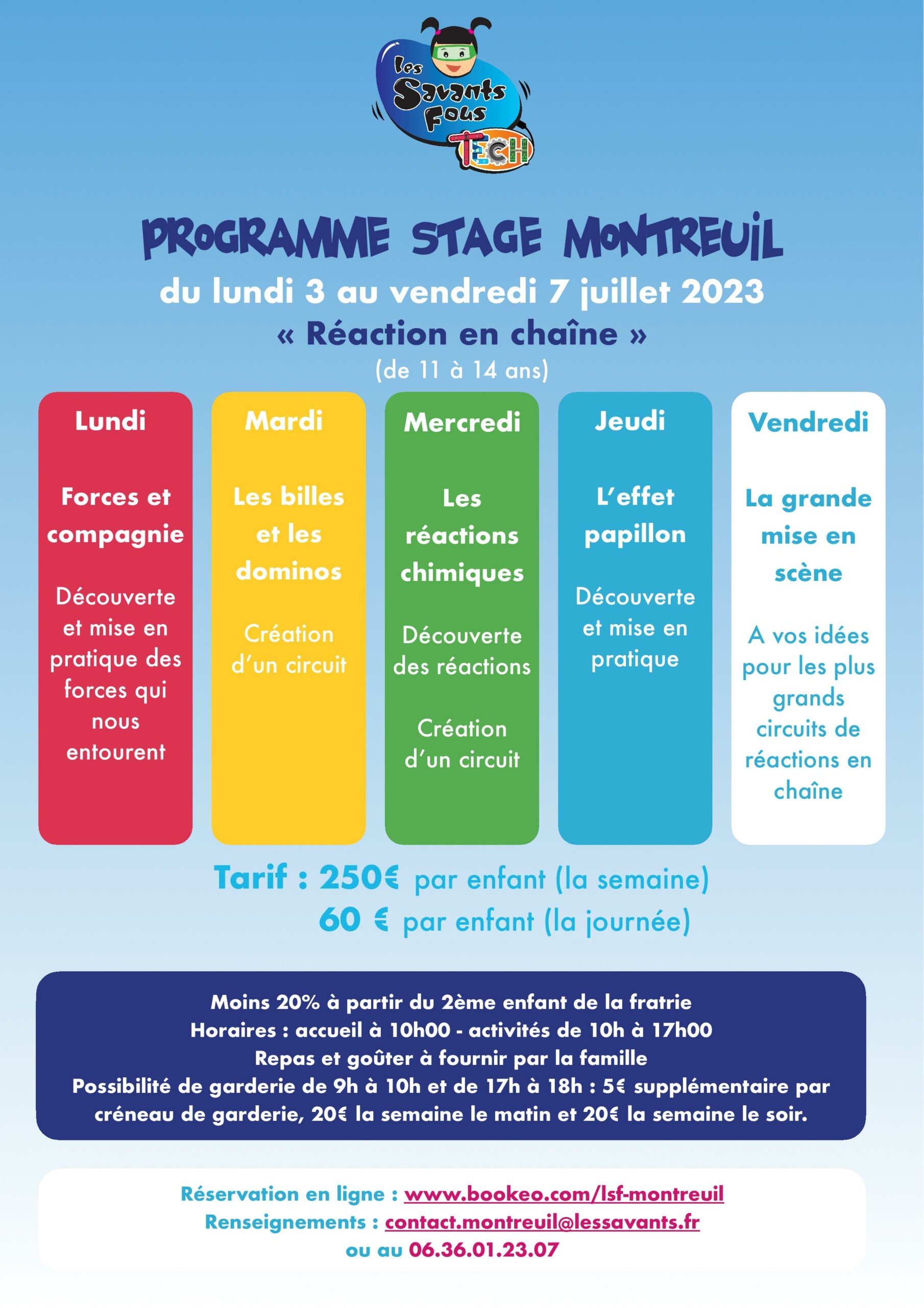Pour plus de renseignements horaires, tarifs, ou toute autre question vous pouvez nous contacter par mail à contact.montreuil@lessavants.fr ou par téléphone au 06.36.01.23.07