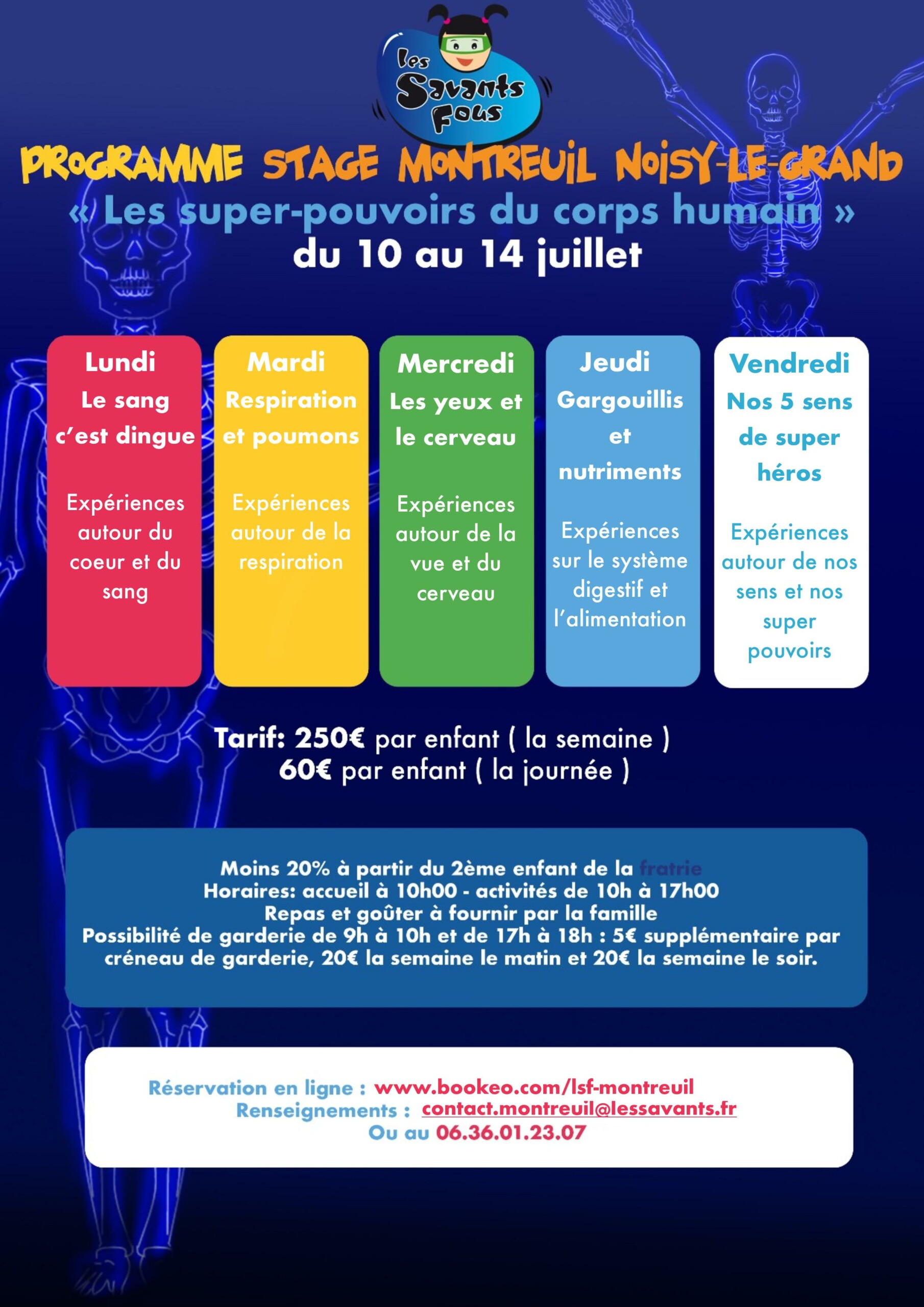 Du lundi 10 au vendredi 14 (inclus) juillet 2023 Les super pouvoirs du corps humain !