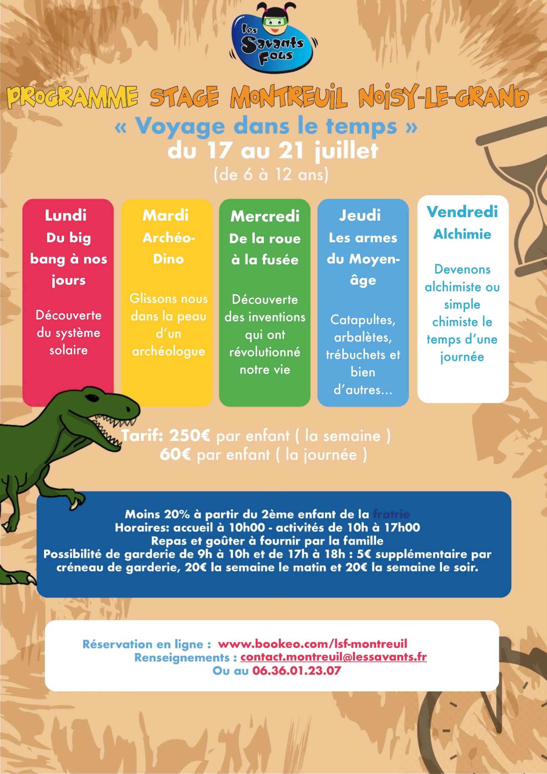 Du lundi 17 au vendredi 21 juillet 2023 Voyage dans le temps !