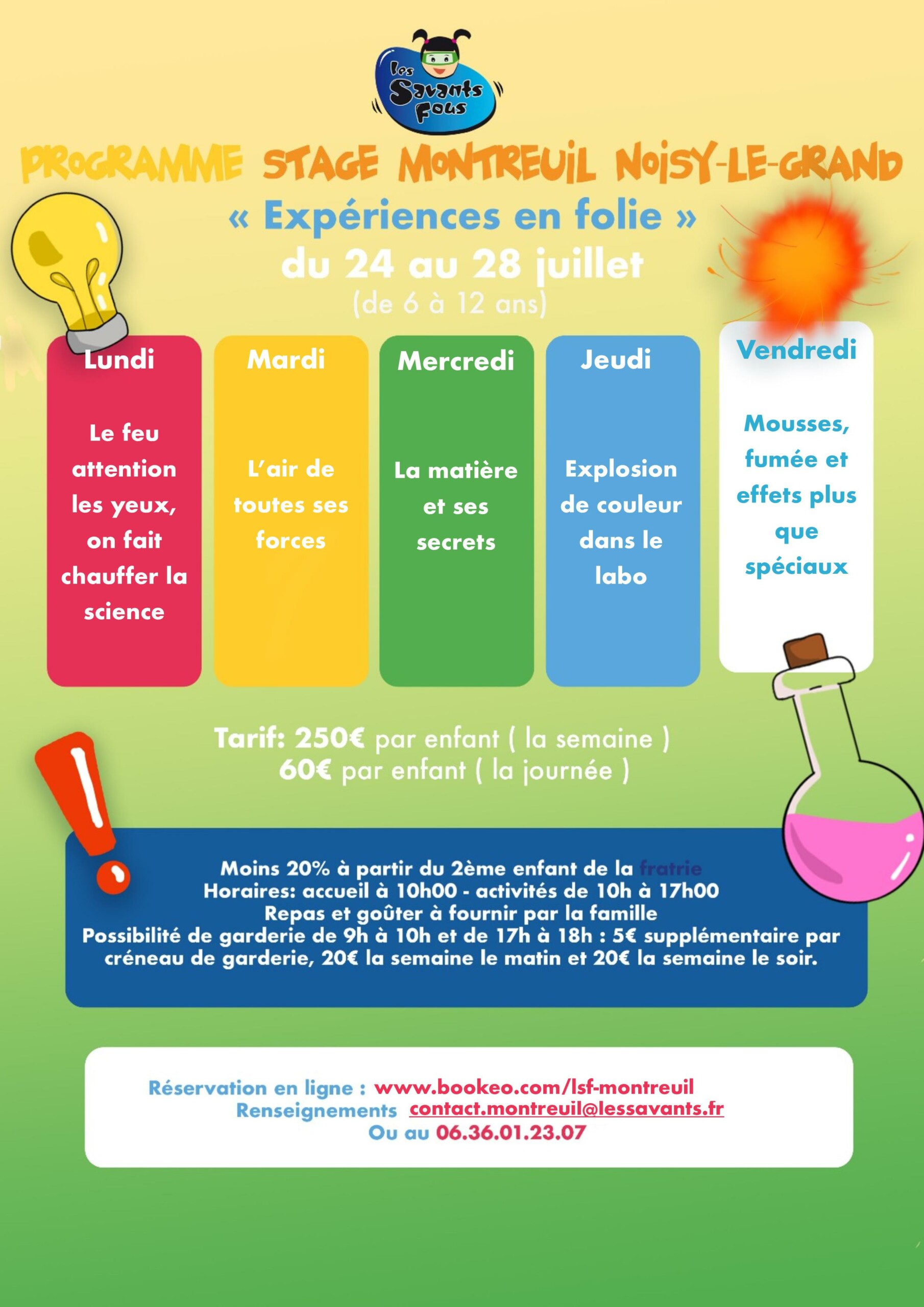 Du lundi 24 au vendredi 28 juillet 2023 Expériences en folie !