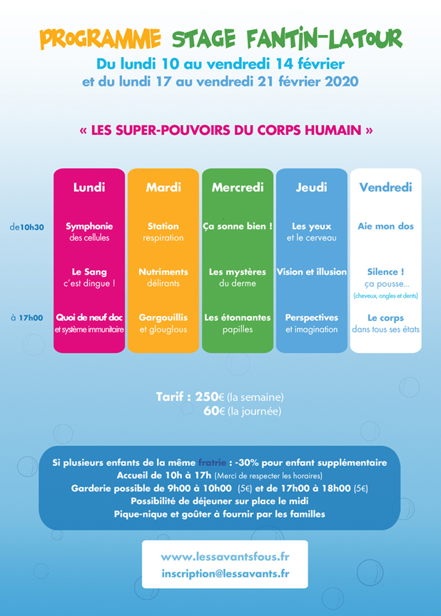 Les deux semaines de stages proposent un voyage au cœur du corps humain ou ils découvriront cette machine incroyable !