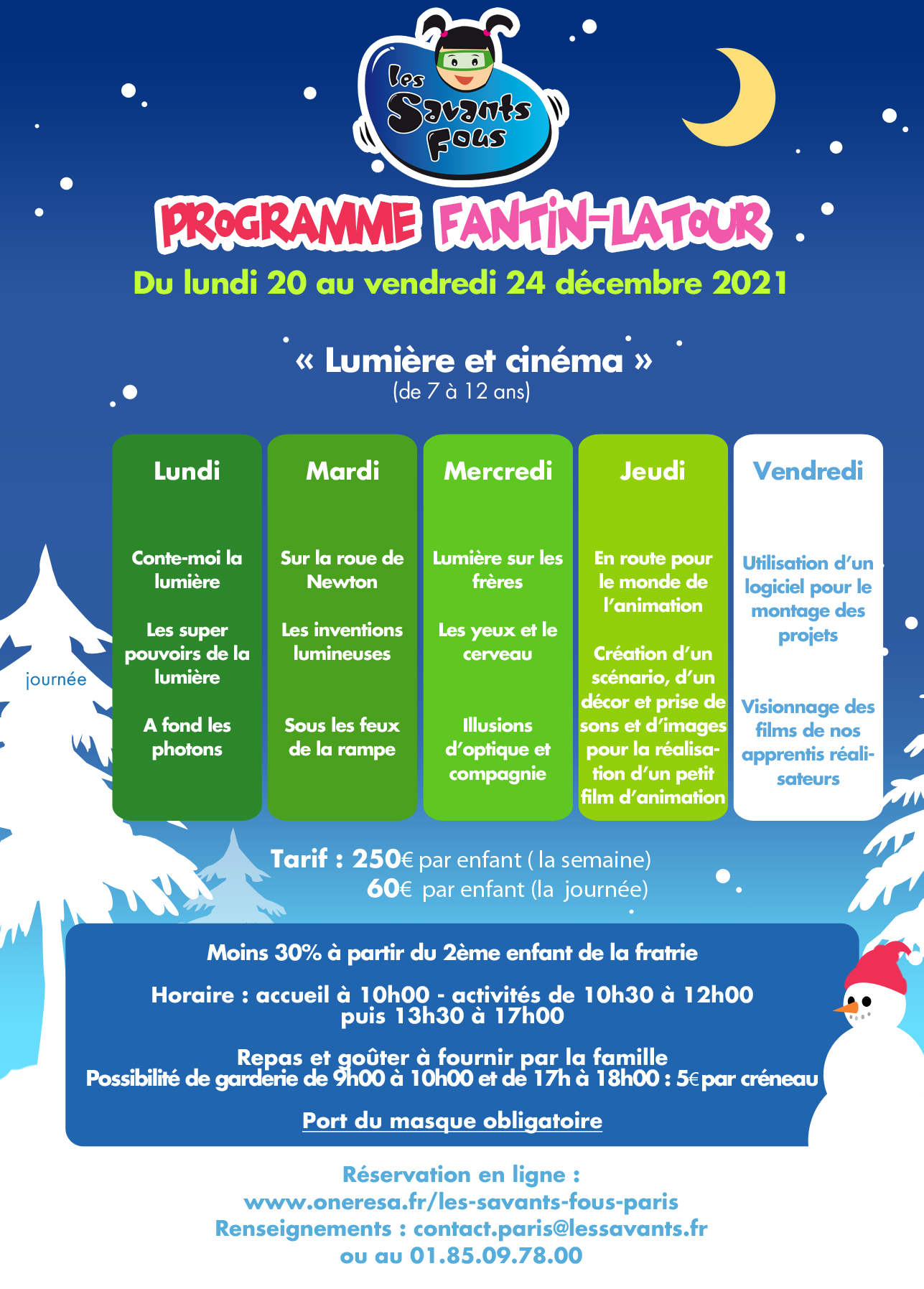 Pour des vacances lumineuses, n’hésitez pas à les inscrire dans notre laboratoire des Savants Fous.