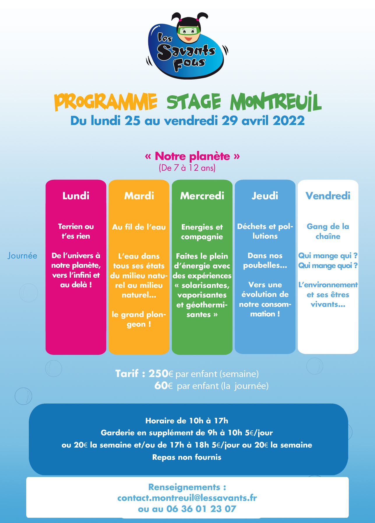 N’hésitez pas à nous joindre pour tout renseignement par téléphone au 06.36.01.23.07 ou par mail à contact.montreuil@lessavants.fr