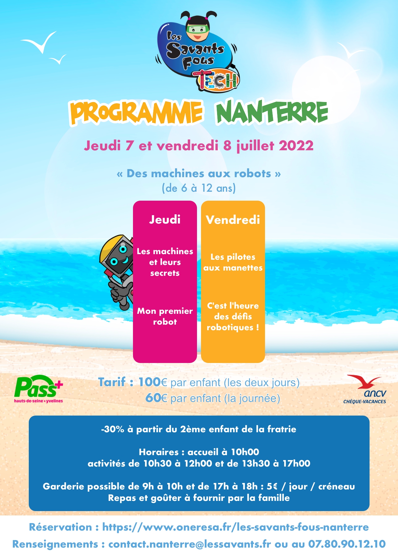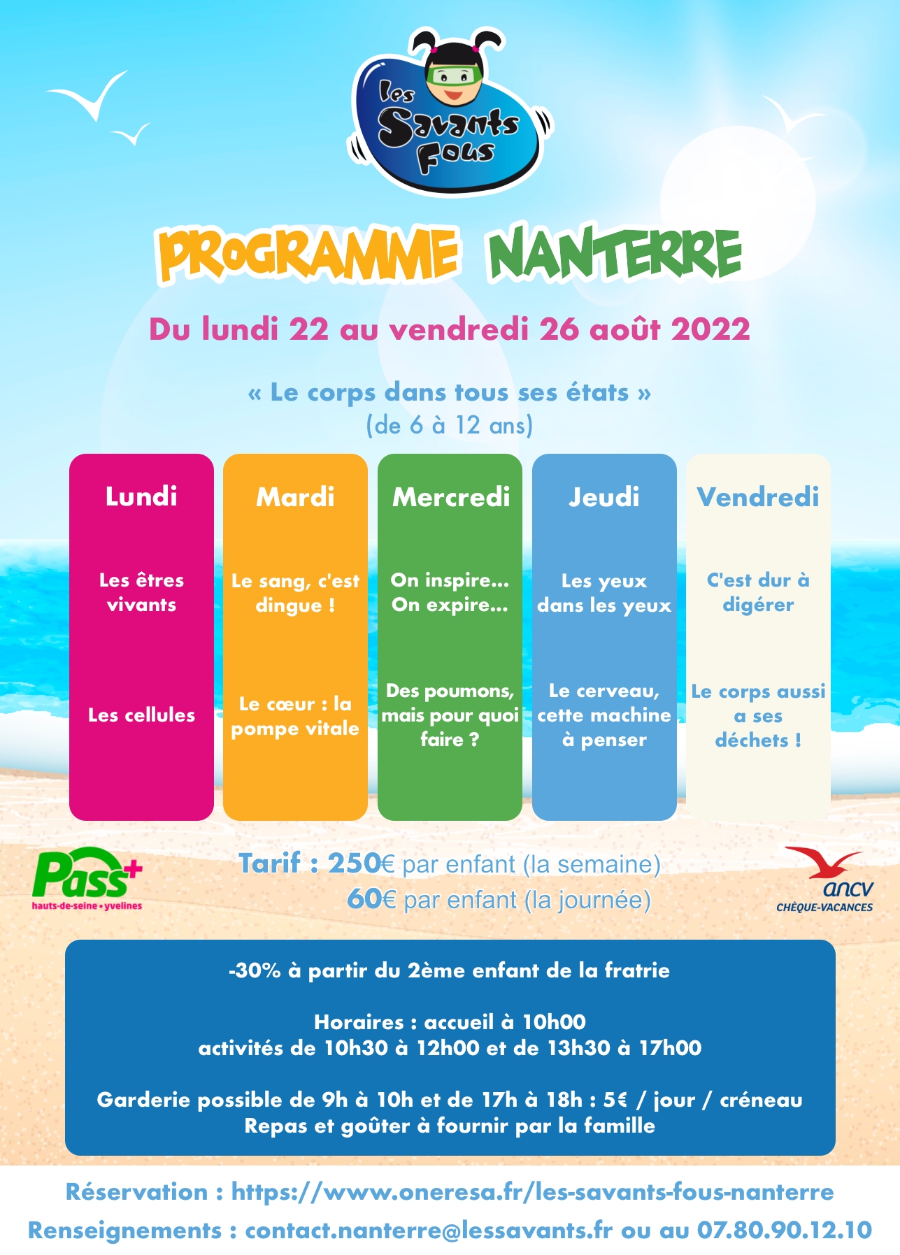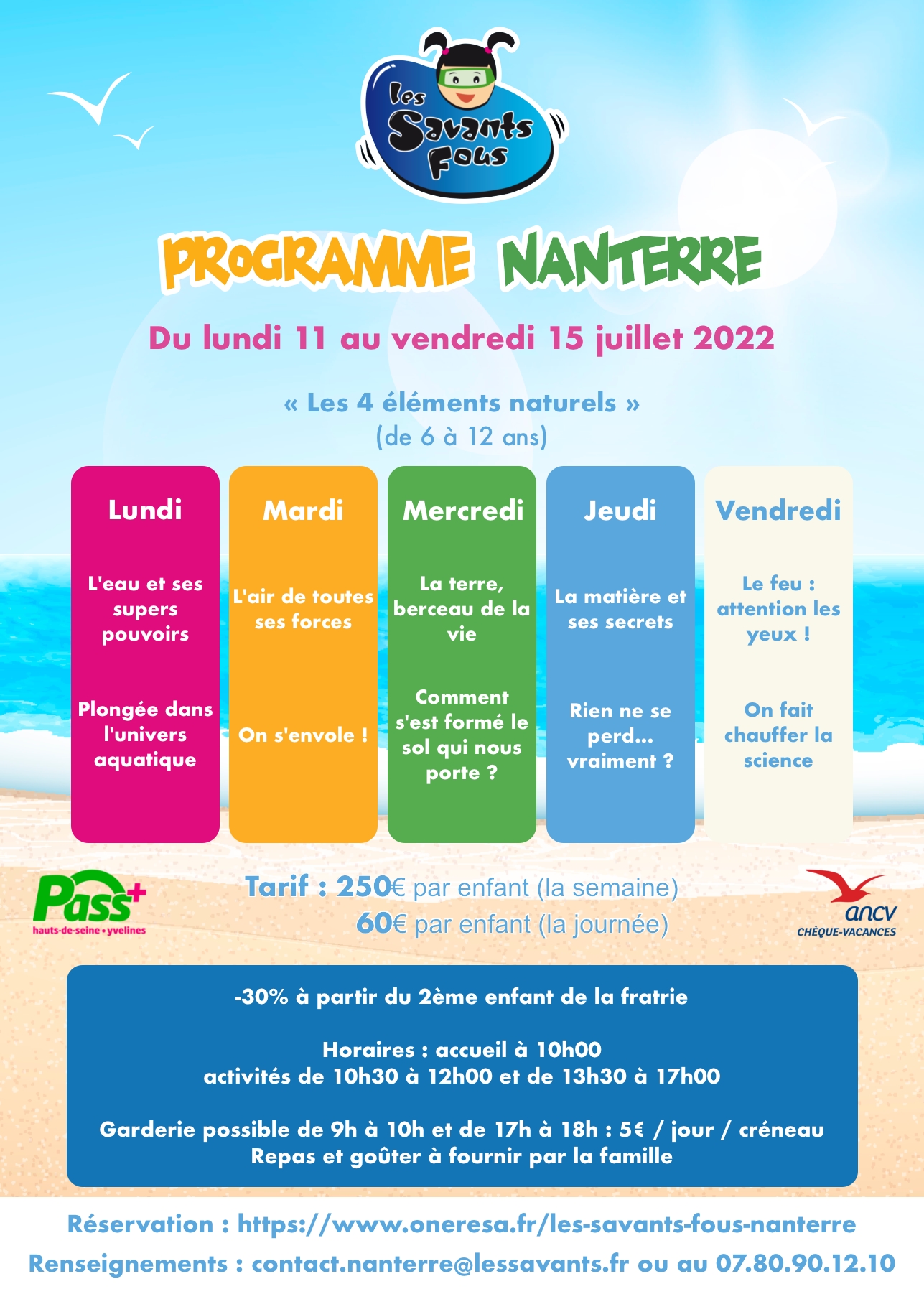 Vous souhaitez régler par chèques vacances ou avec votre Pass+ ? Vous voudriez en savoir plus sur le déroulement de nos stages ? Contactez-nous par téléphone au 07.80.90.12.10 ou par e-mail à contact.nanterre@lessavants.fr.