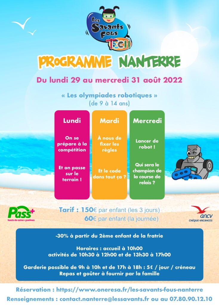 L’année scolaire se termine déjà et voici le moment… de s’amuser ! Offrez à vos enfants des souvenirs uniques avec Les Savants Fous Nanterre et notre programme exceptionnel : des robots, de la science et même du cinéma !